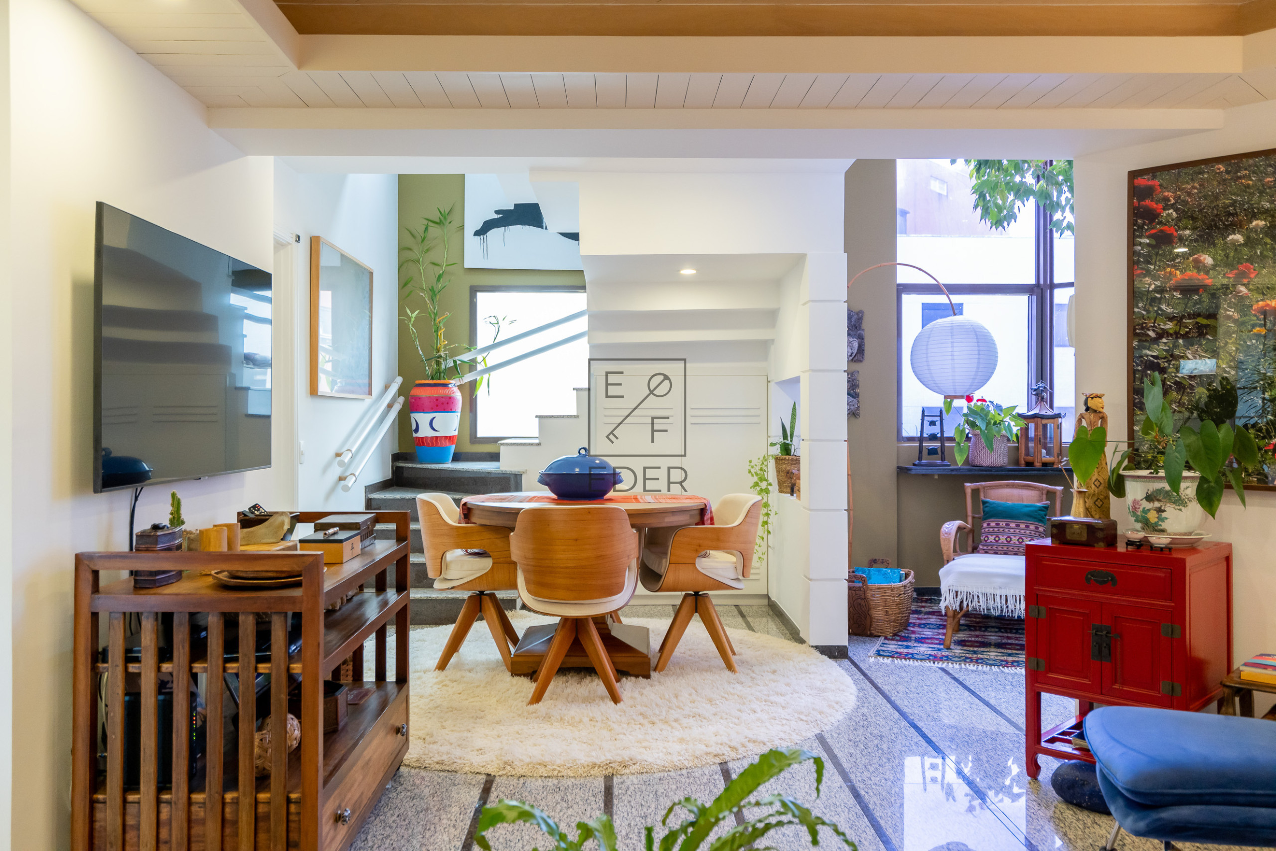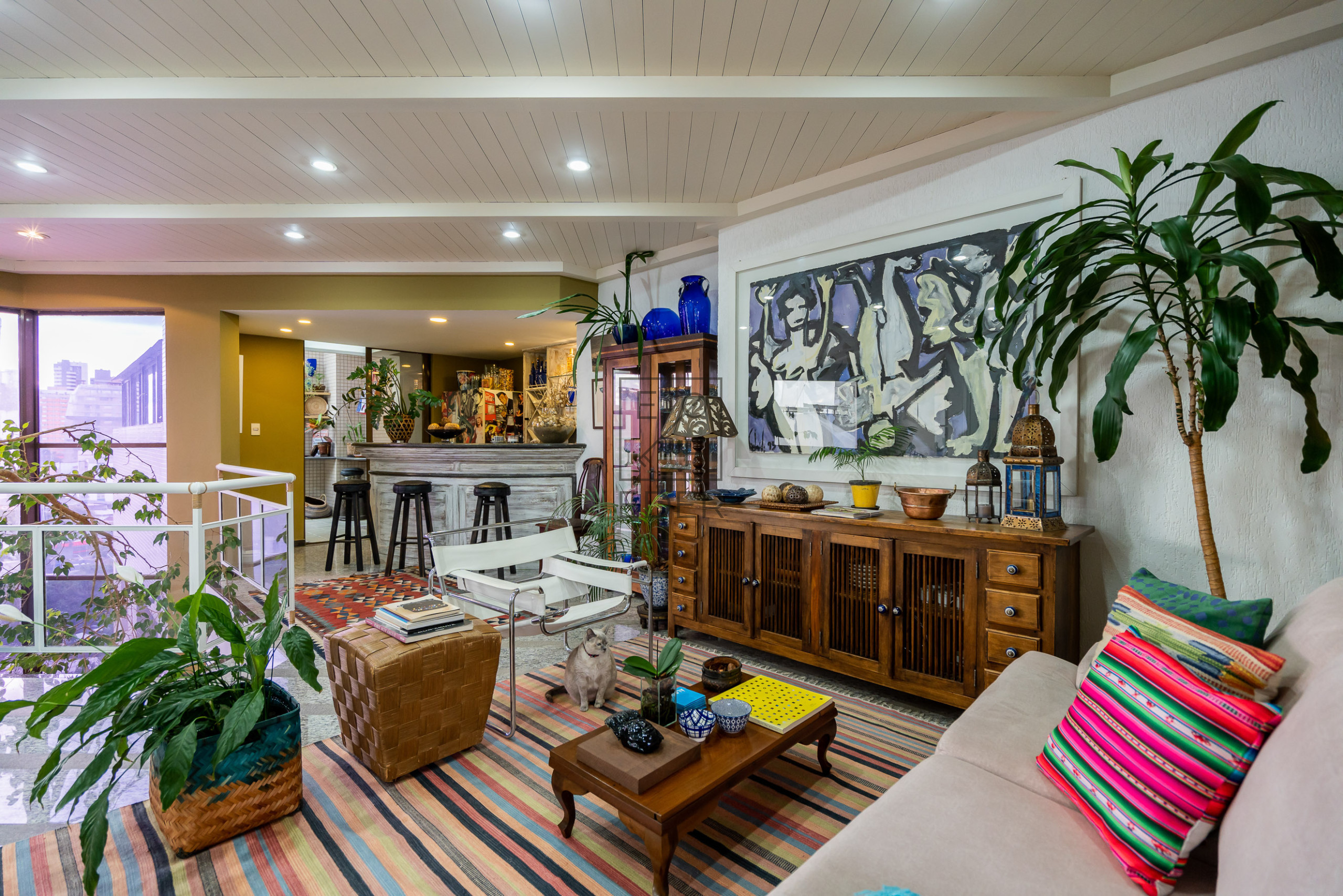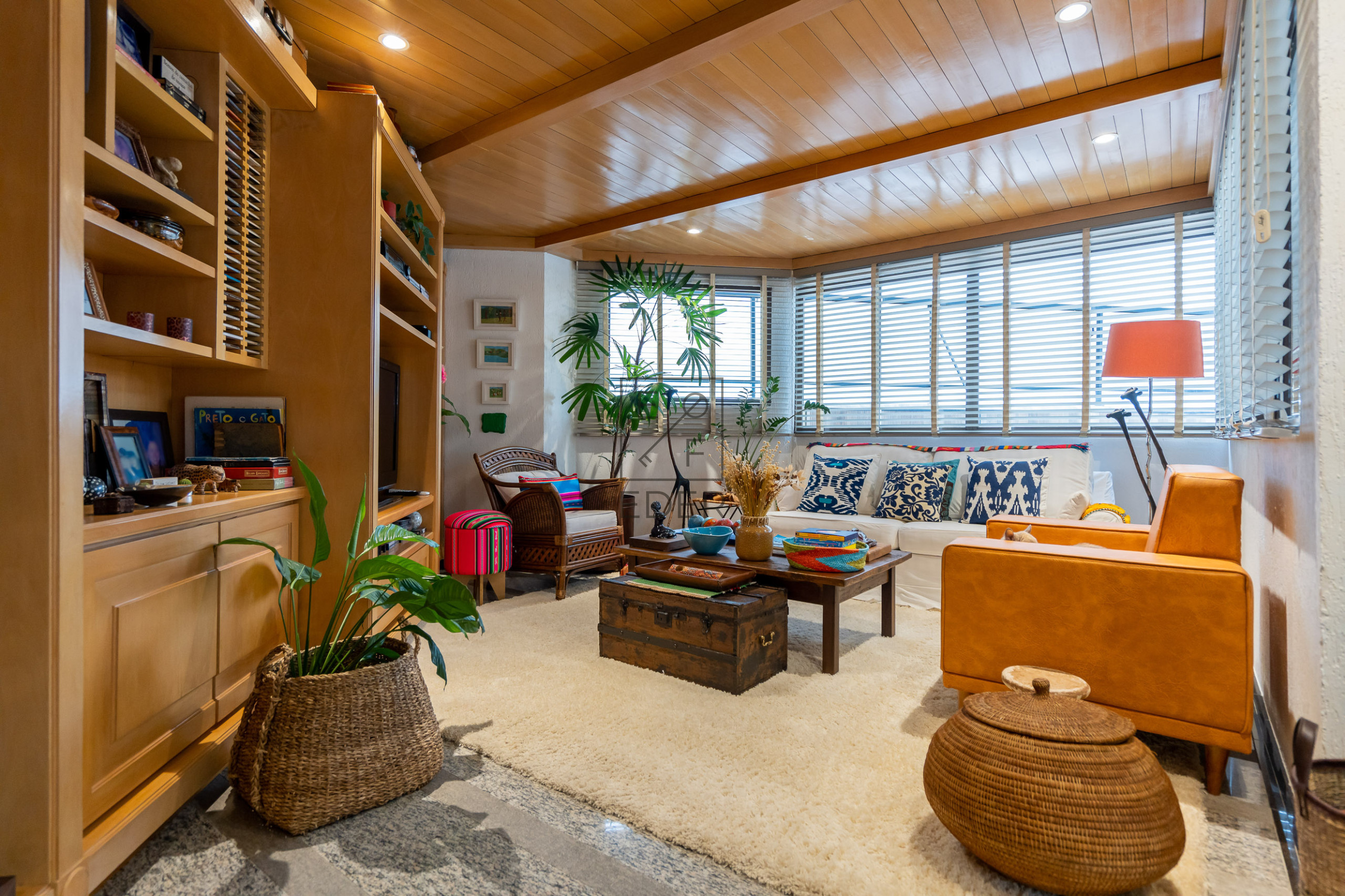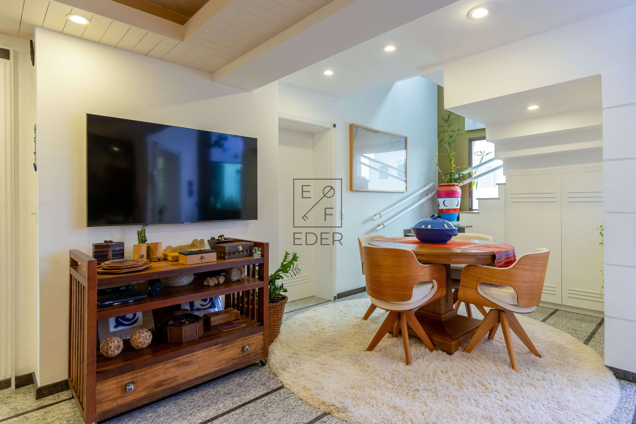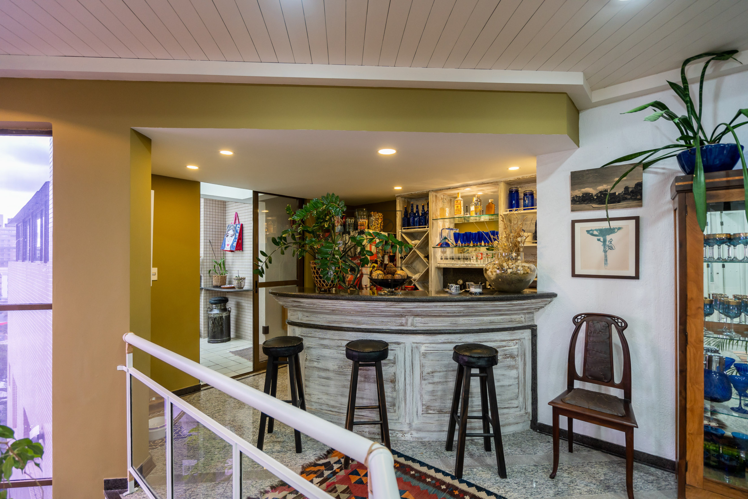 Sala de estar, sala de jantar, sala de TV, lavabo, 2 suítes sendo 1 com closet, cozinha, copa, área de serviço e depêndencia de empregada.